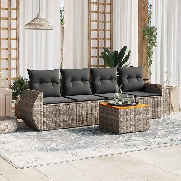 vidaXL Loungegrupp för trädgården med dynor 5 delar konstrotting grå 3257215