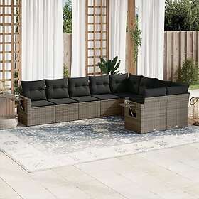 vidaXL Loungegrupp för trädgården m dynor 9 delar grå konstrotting 3252977