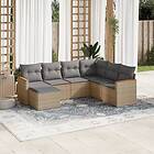 vidaXL Matgrupp för trädgården med dynor 7 delar beige konstrotting 3258608