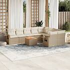 vidaXL Soffgrupp för trädgård med dynor 10 delar beige konstrotting 3257052