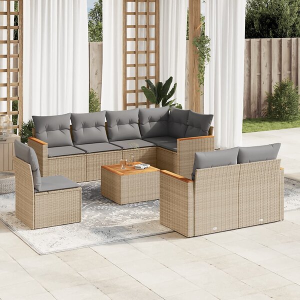 vidaXL Soffgrupp för trädgården med dynor 9 delar beige konstrotting 3258573