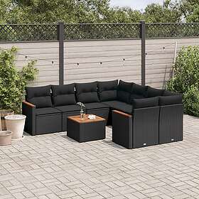 vidaXL Loungegrupp för trädgården m dynor 9 delar svart konstrottning 3258226
