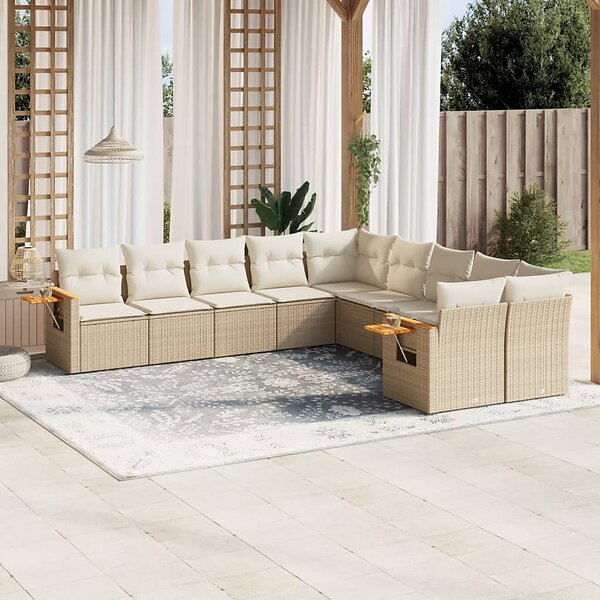 vidaXL Soffgrupp för trädgård med dynor 10 delar beige konstrotting 3259594