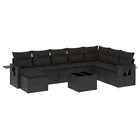 vidaXL Loungegrupp för trädgården m dynor 9 delar svart konstrottning 3252902
