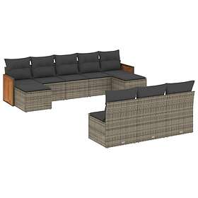 vidaXL Soffgrupp för trädgården med dynor 10 delar grå konstrotting 3260471