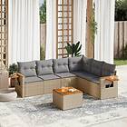 vidaXL Matgrupp för trädgården med dynor 7 delar beige konstrotting 3259252