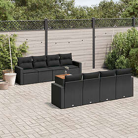 vidaXL Loungegrupp för trädgården m dynor 9 delar svart konstrottning 3256370