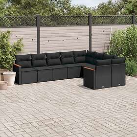 vidaXL Loungegrupp för trädgården m dynor 9 delar svart konstrottning 3258702