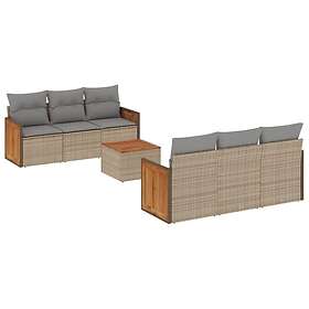 vidaXL Matgrupp för trädgården med dynor 7 delar beige konstrotting 3227473