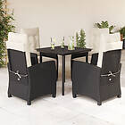 vidaXL Matgrupp för trädgården med dynor 5 delar svart konstrottning 3212734