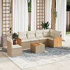 vidaXL Matgrupp för trädgården med dynor 7 delar beige konstrotting 3227703
