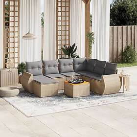 vidaXL Matgrupp för trädgården med dynor 8 delar beige konstrotting 3225121