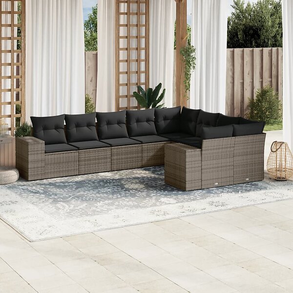 vidaXL Loungegrupp för trädgården m dynor 9 delar grå konstrotting 3255377