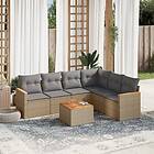vidaXL Matgrupp för trädgården med dynor 7 delar beige konstrotting 3258412