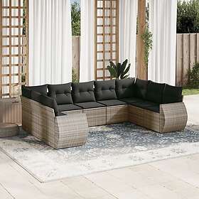 vidaXL Loungegrupp för trädgården m dynor 9 delar grå konstrotting 3254137