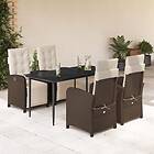 vidaXL Matgrupp för trädgården med dynor 5 delar brun konstrotting 3212545