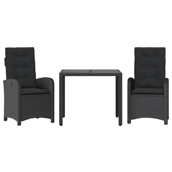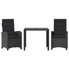 vidaXL Matgrupp för trädgården med dynor 3 delar svart konstrotting 3212203