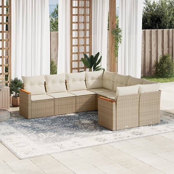 vidaXL Matgrupp för trädgården med dynor 8 delar beige konstrotting 3226555