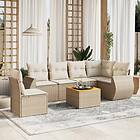 vidaXL Matgrupp för trädgården med dynor 7 delar beige konstrotting 3225029