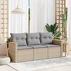 vidaXL Soffgrupp för trädgården 3 delar med dynor beige konstrotting 3258160