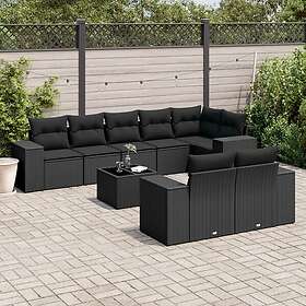 vidaXL Loungegrupp för trädgården m dynor 9 delar svart konstrottning 3255162
