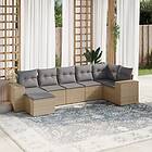 vidaXL Matgrupp för trädgården med dynor 7 delar beige konstrotting 3255216