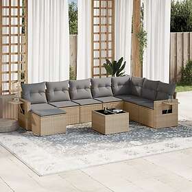 vidaXL Soffgrupp för trädgården med dynor 9 delar beige konstrotting 3252906