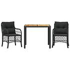 vidaXL Caféset med dynor 3 delar svart konstrotting 3212042