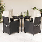 vidaXL Matgrupp för trädgården med dynor 5 delar svart konstrottning 3212733
