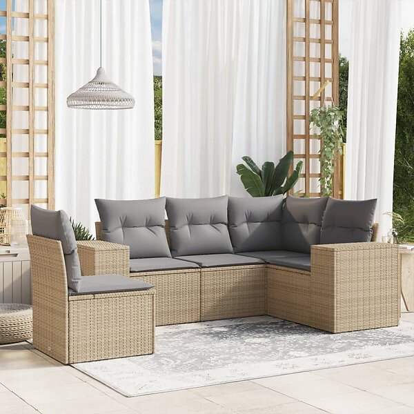 vidaXL Soffgrupp för trädgården med dynor 5 delar beige konstrotting 3254906