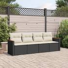 vidaXL Soffgrupp för trädgård med dynor 4 delar svart konstrotting 3225769