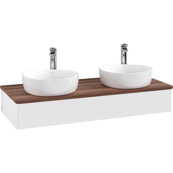 Villeroy & Boch V&B Antao Servantskap med 1 skuff 120x50x19 cm, m/lys, Hvit Matt/Valnøtt