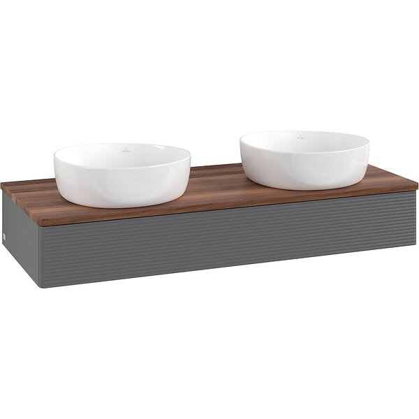 Villeroy & Boch V&B Antao Servantskap med 1 skuff 120x50x19 cm, m/lys, Antrasitt/Valnøtt