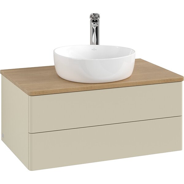 Villeroy & Boch V&B Antao Servantskap med 2 skuffer 80x50x36 cm, m/lys, Grå Matt/Eik