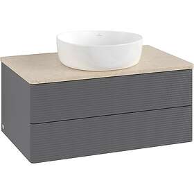 Villeroy & Boch V&B Antao Servantskap med 2 skuffer 80x50x36 cm, m/lys, Antrasitt/Crème