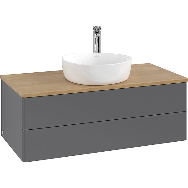 Villeroy & Boch V&B Antao Servantskap med 2 skuffer 100x50x36 cm, m/lys, Antrasitt/Eik