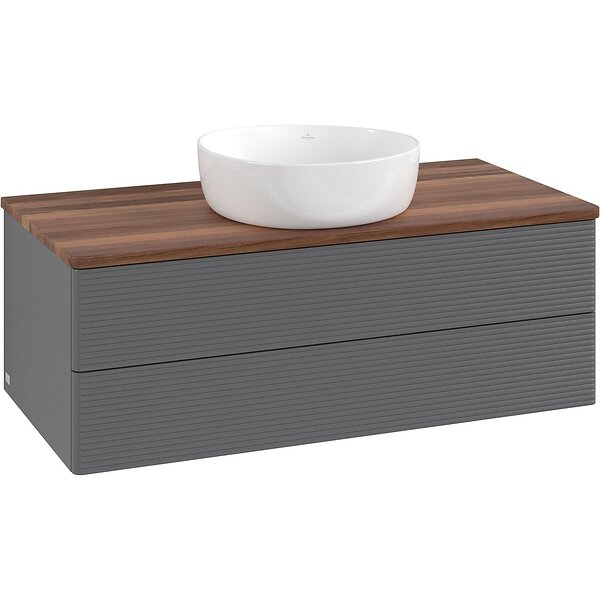 Villeroy & Boch V&B Antao Servantskap med 2 skuffer 100x50x36 cm, m/lys, Antrasitt/Valnøtt