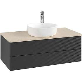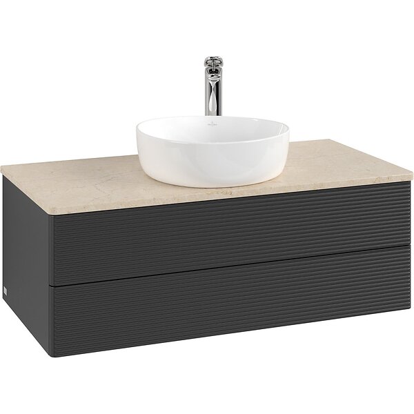Villeroy & Boch V&B Antao Servantskap med 2 skuffer 100x50x36 cm, m/lys, Sort Matt/Crème