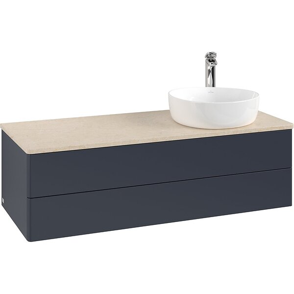 Villeroy & Boch V&B Antao Servantskap med 2 skuffer 120x50x36 cm, m/lys, Blå Matt/Crème