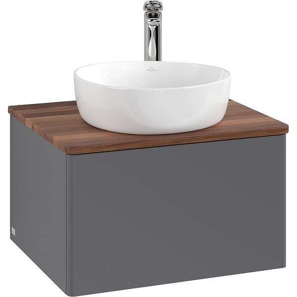 Villeroy & Boch V&B Antao Servantskap med 1 skuff 60x50x36 cm, m/lys, Antrasitt/Valnøtt