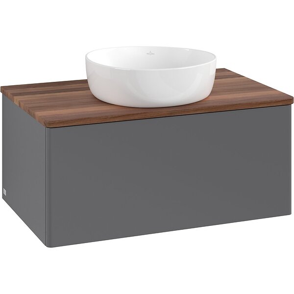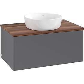Villeroy & Boch V&B Antao Servantskap med 1 skuff 80x50x36 cm, m/lys, Antrasitt/Valnøtt