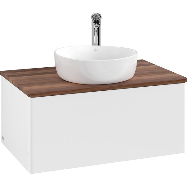 Villeroy & Boch V&B Antao Servantskap med 1 skuff 80x50x36 cm, m/lys, Hvit Matt/Valnøtt
