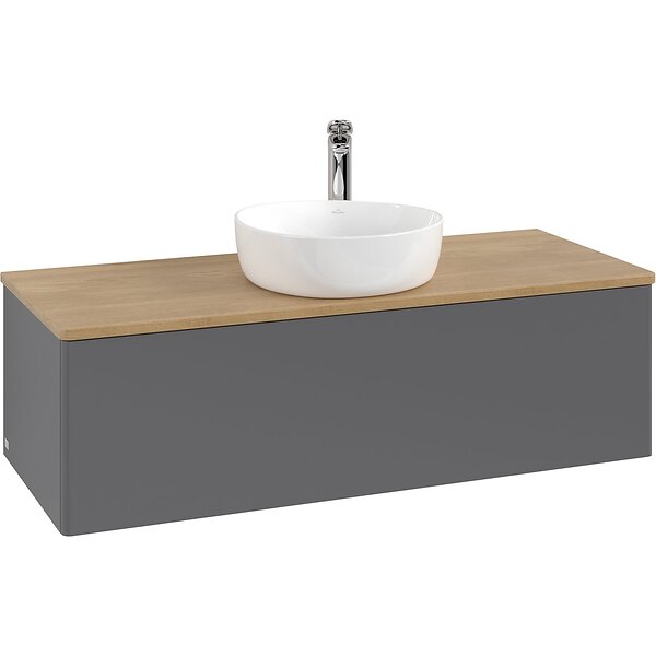 Villeroy & Boch V&B Antao Servantskap med 1 skuff 120x50x36 cm, m/lys, Antrasitt/Eik