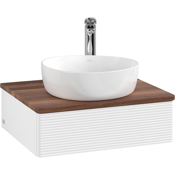 Villeroy & Boch V&B Antao Servantskap med 1 skuff 60x50x19 cm, m/lys, Hvit Matt/Valnøtt