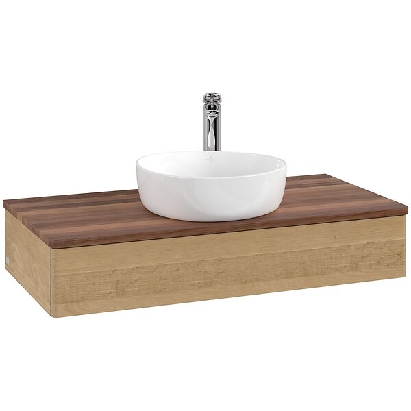 Villeroy & Boch V&B Antao Servantskap med 1 skuff 100x50x19 cm, m/lys, Eik/Valnøtt