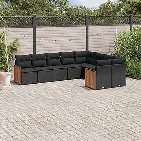 vidaXL Loungegrupp för trädgården m dynor 9 delar svart konstrottning 3227980