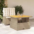 vidaXL Matgrupp för trädgården med dynor 2 delar beige konstrotting 3277475