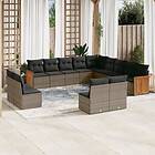 vidaXL Soffgrupp för trädgården med dynor 13 delar grå konstrotting 3228167
