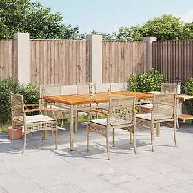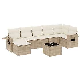 vidaXL Matgrupp för trädgården med dynor 8 delar beige konstrotting 3220507