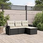 vidaXL Soffgrupp för trädgård med dynor 4 delar svart konstrotting 3220065